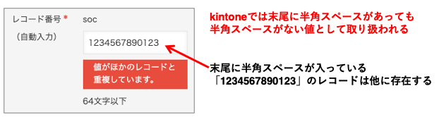 “1234567890123 “(末尾に半角スペースあり)も同じ値として扱われます。