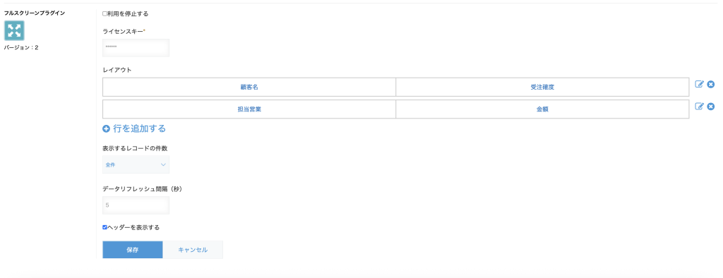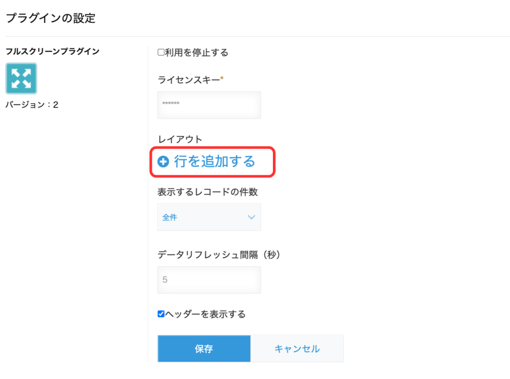 ライセンスキーを入力し、以下の設定欄にて、行の追加を選択し、自分が表示したいフィールドを設定しましょう。
