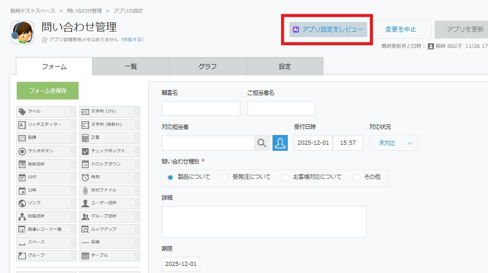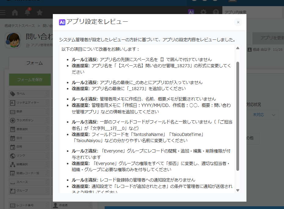 AIにkintoneアプリの設定をレビューしてもらいました!