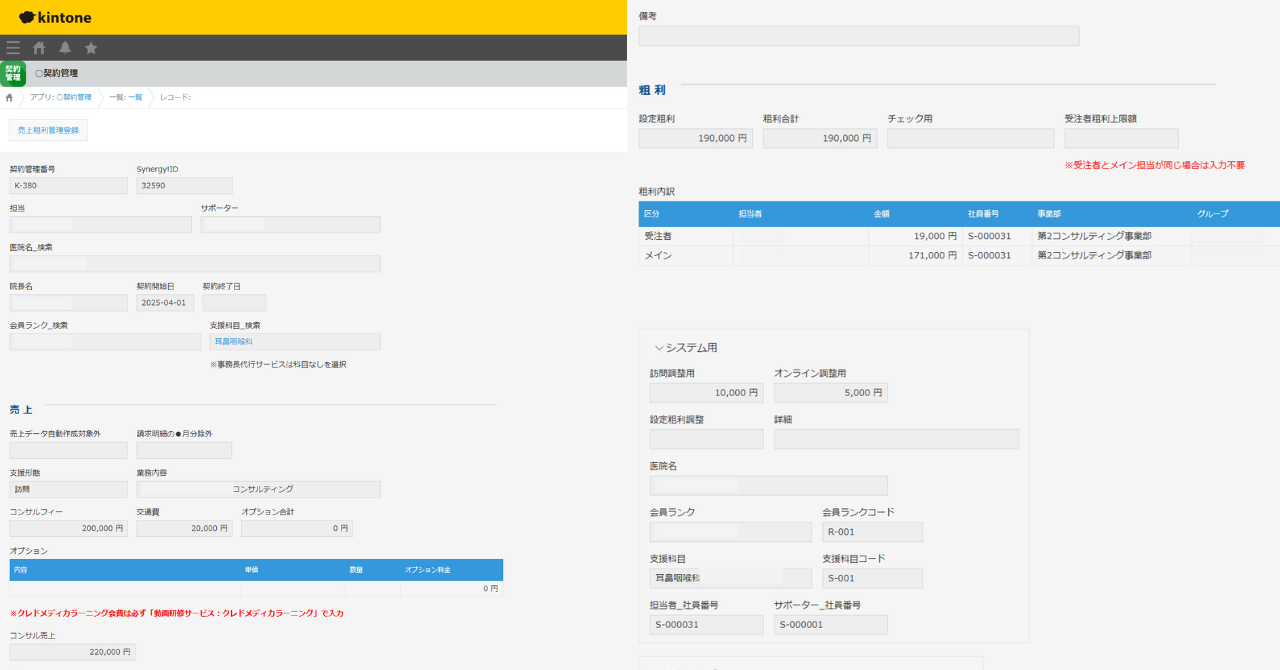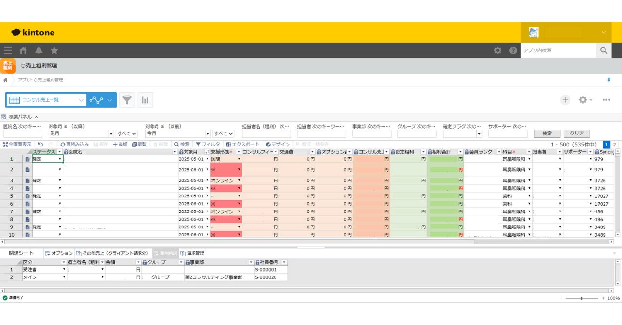 売上種別ごと、クライアントごと、診療科ごとの売上粗利実績集計がkintone上で即時確認できるようになり、従来の煩雑な管理作業から解放されました。