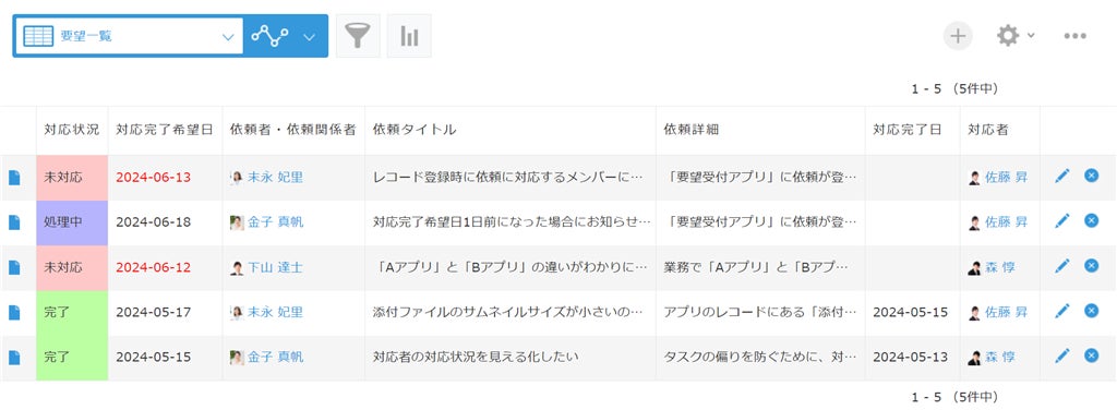 案件管理:案件ステータス(「提案中」、「交渉中」、「契約済」)に応じてレコードの背景色や文字色を変更します。これにより、営業担当者は重要な案件やフォローアップが必要な案件を一目で把握できるようになります。