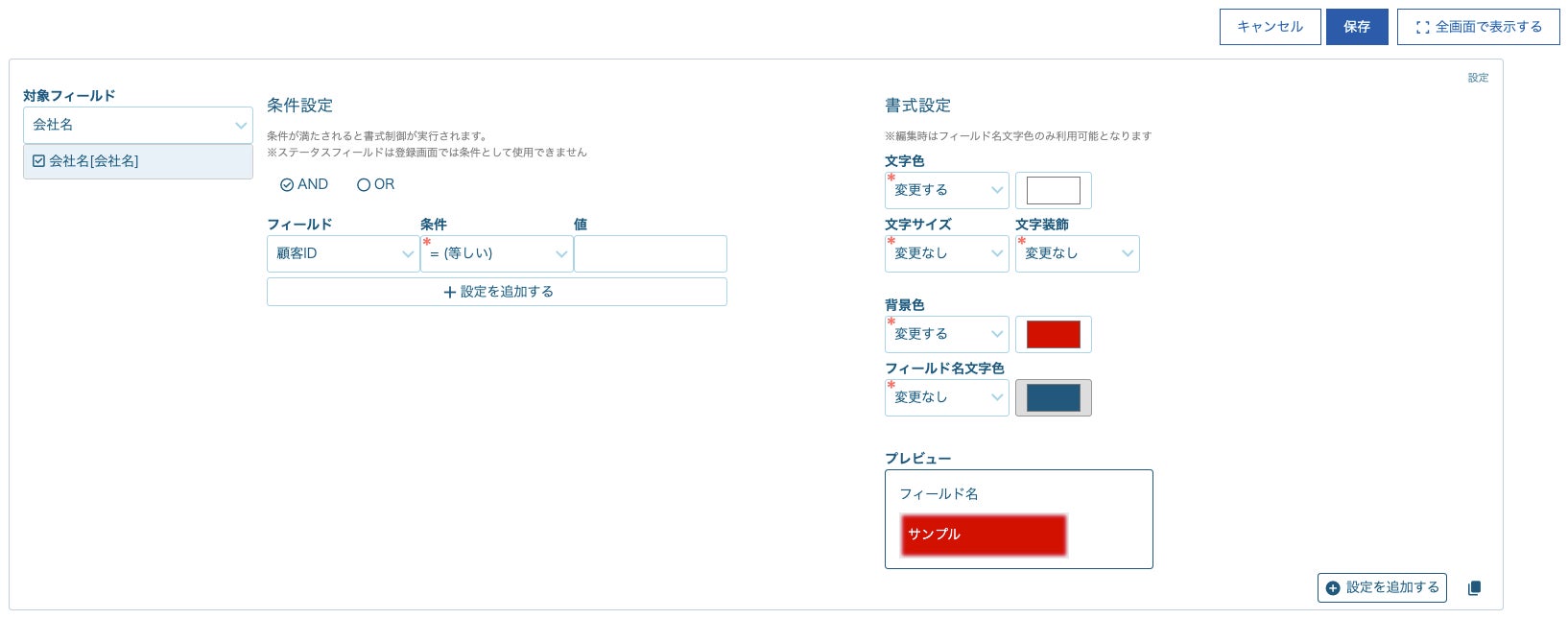 フィールド装飾:背景色、フィールド名の文字色