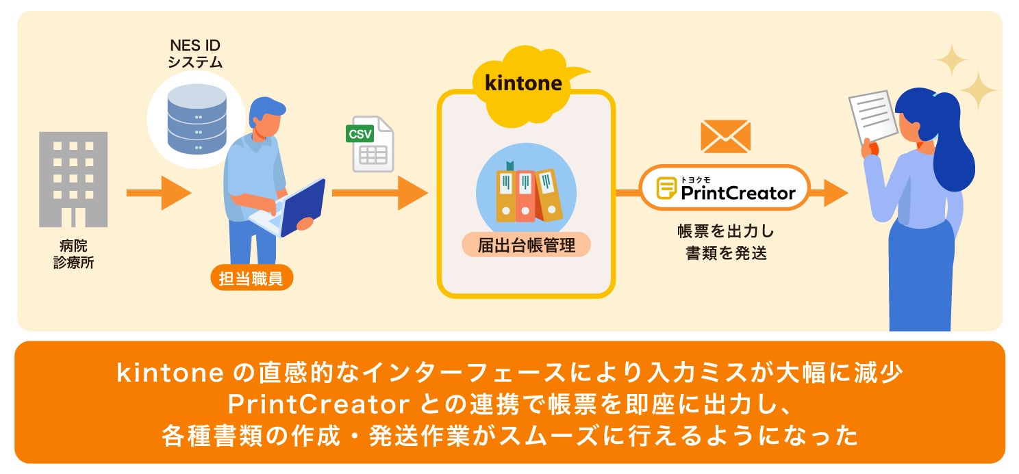 結核患者管理においては、kintoneの直感的なインターフェースにより入力ミスが大幅に減少し、帳票出力サービス「PrintCreator」との連携により必要な帳票を即座に出力できるため、各種書類の作成・発送作業が格段にスムーズになりました。