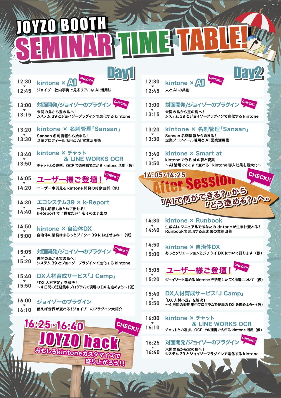 当日は定額制対面開発サービス「システム39」や自治体向けパッケージ「ジチタイ39」、無償プラグイン活用セミナーなど多彩なコンテンツを用意し、10年以上にわたるkintone導入支援のノウハウを余すところなくご紹介します。