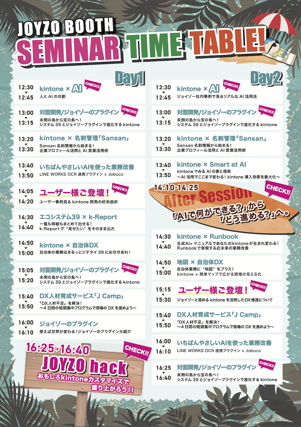 ジョイゾーは、2025年10月27日(月)・28日(火)に幕張メッセで開催されるサイボウズ株式会社主催の「Cybozu Days 2025」に出展いたします。本年のCybozu Daysのテーマは「ノーコードAIランド」。ジョイゾーは「HAW “AI” I」をテーマに、AIと伝統が融合する南国の島をイメージしたブースを展開し、ノーコードとAIが切り拓く業務改善の未来を体感していただきます。