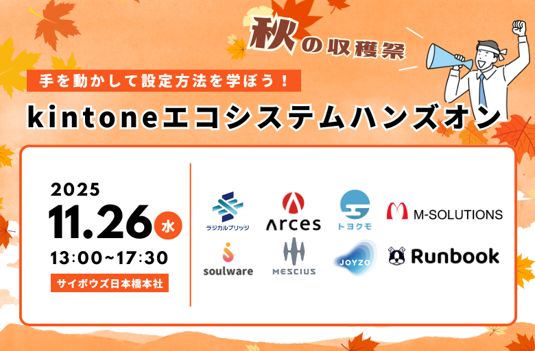【※現地開催※】 手を動かして設定方法を学ぼう! kintoneエコシステムハンズオン〜秋の収穫祭〜